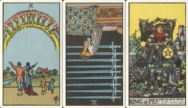 牌:圣杯十+ 宝剑九- 星币皇帝+