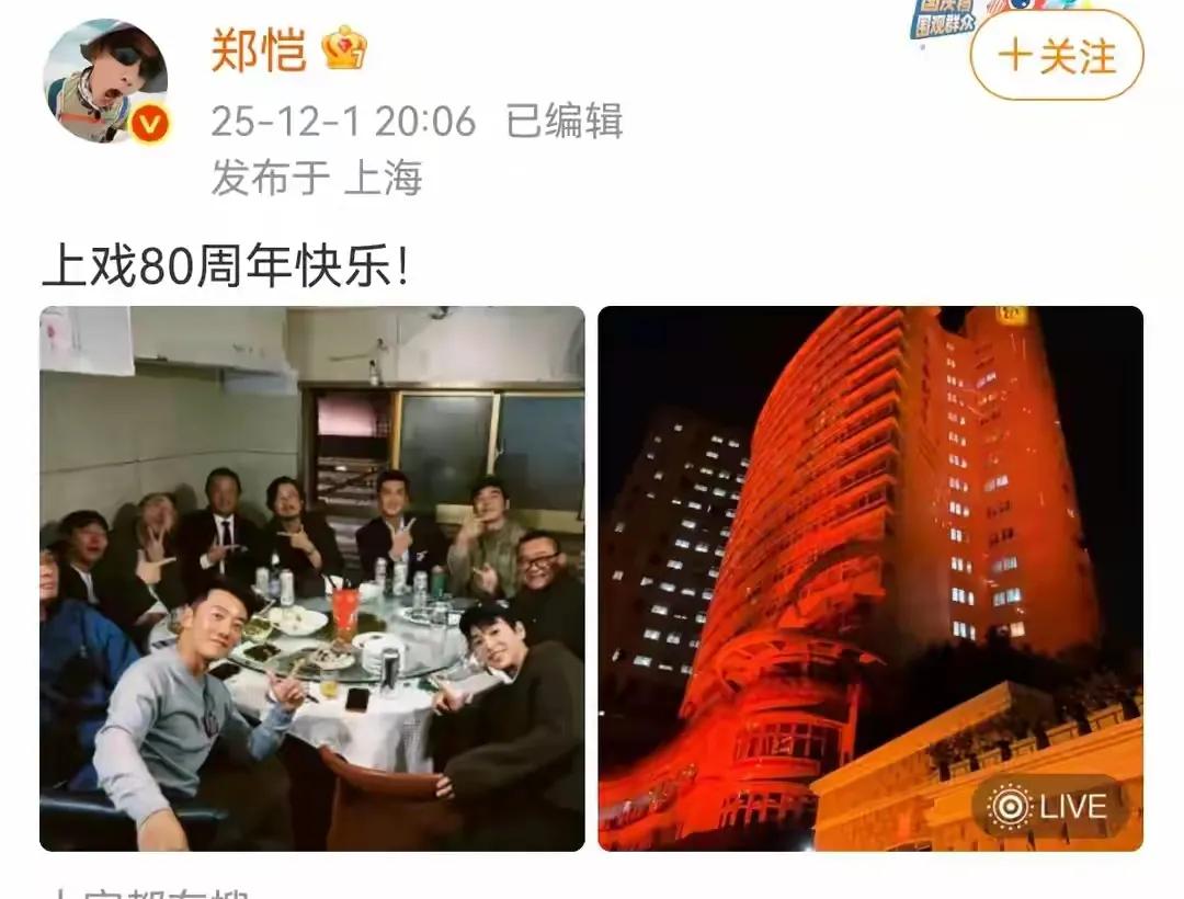 前几天,正值上海戏剧学院八十年校庆,很多校友都赶回来庆祝母校的生日,同班同学也就有了重新聚首的机会和理由,04级的郑恺就在校庆当天,分享了和同学师兄弟聚餐的画面。
