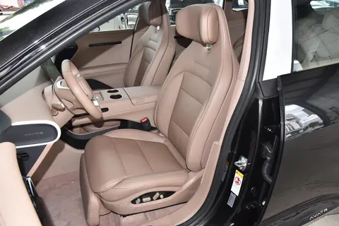 步入车内,给我的感受就是 “豪华感拉满”,完全不像这个价位该有的配置。作为 “入门即满配” 的代表,全系标配的双零重力座椅太让人惊喜了,前排座椅不仅支持通风、加热、按摩功能,零重力模式开启后,能把身体完全托住,长途驾驶或乘坐时,疲惫感会减轻很多。我身高 178cm,调整好前排驾驶位后,头部还有一拳多的余量,腿部空间也很充裕,不会觉得局促;换到后排,腿部距离前排座椅还有两拳左右,头部空间也很宽敞,就算坐三个成年人也不会觉得拥挤。后排中间的地板凸起不算高,中间乘客的腿部也能有不错的放置空间。车内的储物空间设计得很实用,门板、中控台下方、扶手箱等位置都有储物格,手机、水杯、零食袋等小物件都能找到地方放。后排还标配了 5L 冷暖冰箱,夏天能放饮料、水果,冬天能保温牛奶,不管是日常通勤还是长途自驾,都能满足全家的需求。内饰用料很扎实,触手可及的地方大多用了软性材料包裹,Ultra 版本还配备了 NAPPA 真皮、真木饰板和麂皮顶棚,豪华感更上一层楼。总之,阿维塔 07(品技术) 的内饰豪华,座椅的舒适性和配置更丰富。
