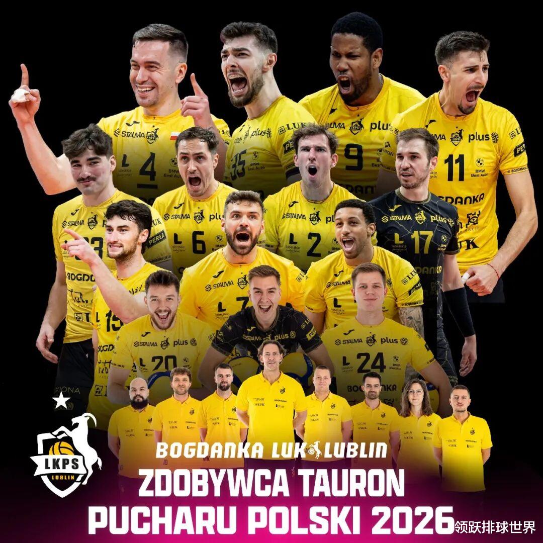 这场胜利意义非凡,卢布林男排历史上从未染指过波兰杯,此番首冠意味着他们正式打破传统强队的垄断,成为新王者。而更让人惊叹的是,自2025年5月首次登顶波兰联赛冠军后,卢布林便开启了无敌模式:2025年10月捧起超级杯,2026年1月再添波兰杯,短短8个月时间完成“国内大满贯”。