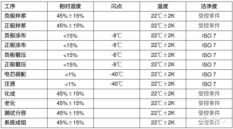 环境参数:湿度(涂布工序<15%)、温度(22±2℃)、洁净度(注液工序湿度<1%)。