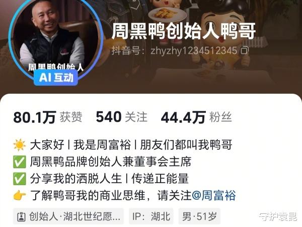 周黑鸭创始人周富裕,以 “鸭哥” 身份频繁出镜。工厂巡查、新品试吃、街头采访、创业故事,什么都拍。哪怕被卡磁炉炸伤,也带伤拍视频、开直播,一句 “轻伤不下火线”,让网友看到创始人的担当。他用接地气的日常,打破 “上市公司老板” 的距离感,把 “真诚、实在” 的人设立住。粉丝信任 “鸭哥”,自然信任周黑鸭,直播间单场观看量最高近 5 万,新品销量直接被带火。