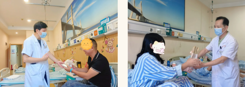 这样温暖的场景,在各楼层病房不断上演。从白发苍苍的老人到懵懂可爱的孩童,从患者到家属,每一个接过月饼的人,脸上都洋溢着惊喜与动容,病房里的医患情谊,在祝福与暖意中愈发深厚。