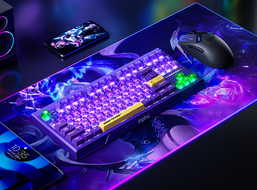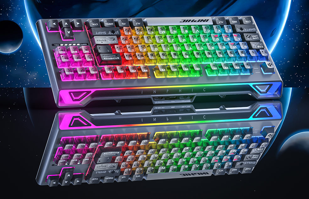 英菲克K87 PRO采用星舰机甲风设计,线条硬朗,棱角分明,设计语言上迸发出一种力量感。此次特别设计了深渊镜霓虹灯带,强化了科幻未来感,光影的变化使游戏氛围更进一步。