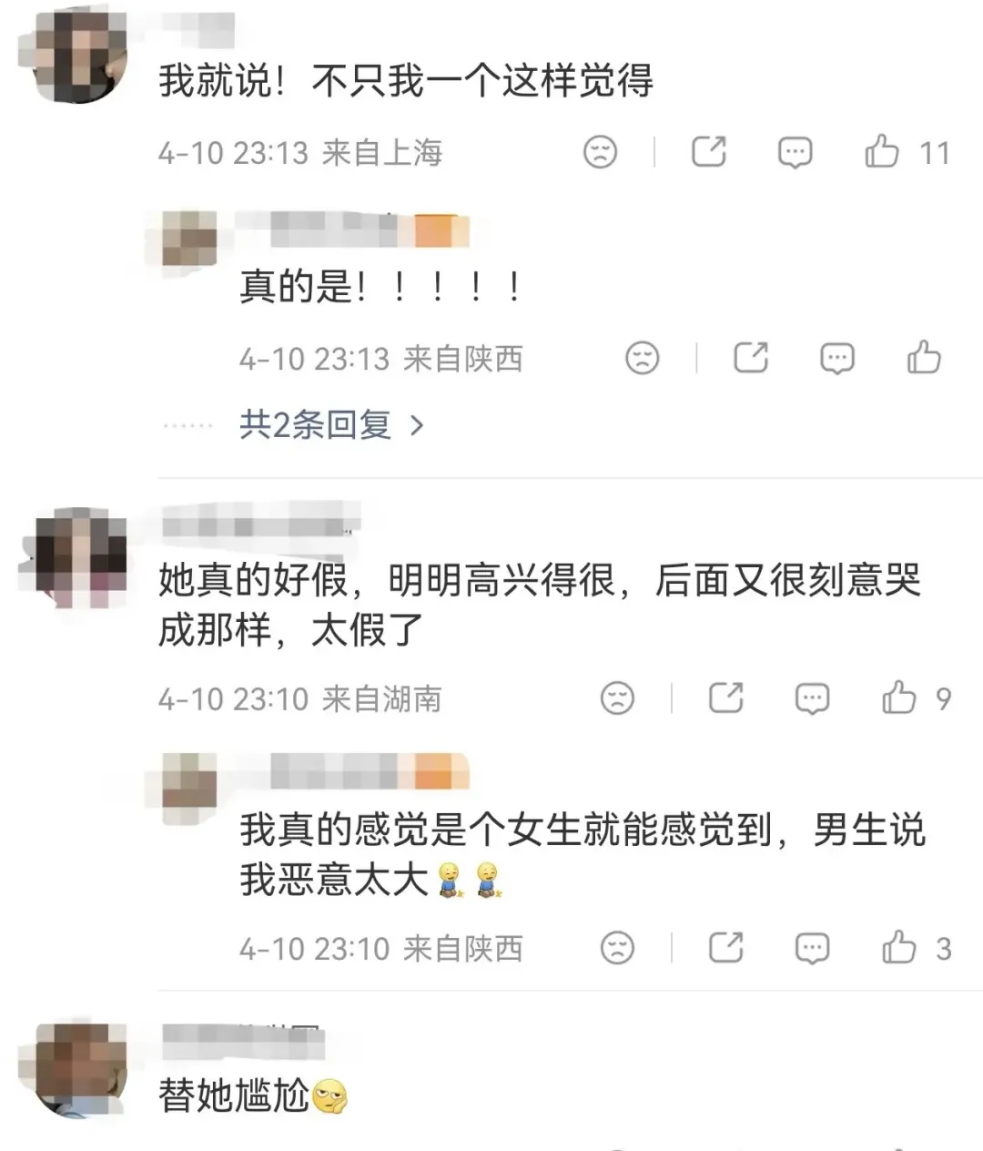 有人直言:太假了,早知道结果还装崩溃,演给谁看。