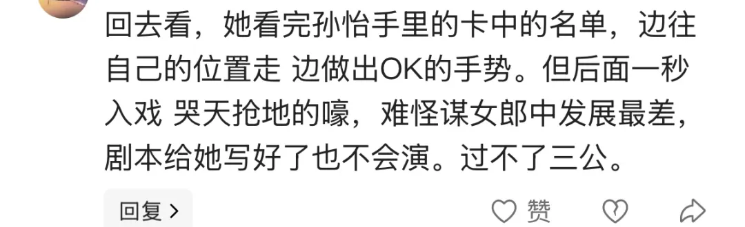 更有网友联想到她在《欢乐颂3》中饰演的何悯鸿,直言:这哪里是演戏,分明是本色出演。