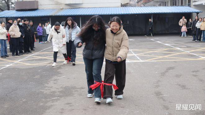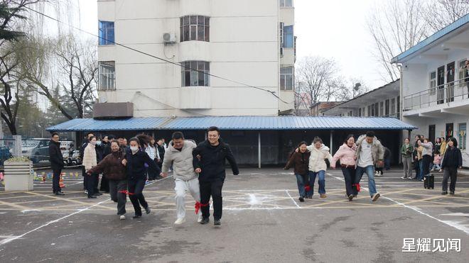 紧接着,两人三足游戏热闹开赛。干部职工们两两一组、自由组队,绑紧脚踝并肩前行。赛场上,大家步调一致、默契配合、稳步冲刺,在快慢交替的节奏中增进了彼此的情谊。活动共评选出一等奖 1 名、二等奖 2 名、三等奖 3 名,无论名次高低,每一组参赛者都在携手同行中收获了快乐与成长。