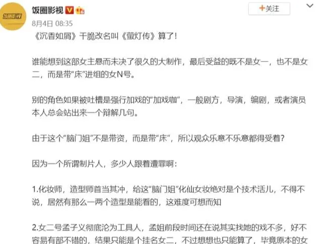 10个恶毒女配加起来都没一个灯芯子恶心,不仅连抢杨紫8套戏服和头饰,更是仗着自己“带床进组”,疯狂给自己加戏。