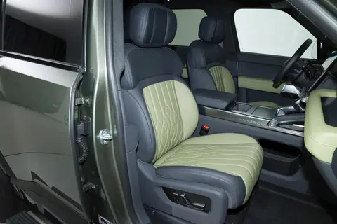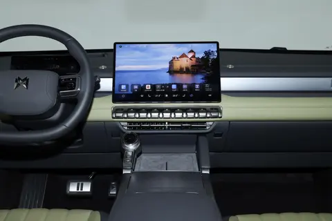 走进车内,猛士M817内饰用料我仔细摸了摸,真皮和软质材料手感很细腻,很不像传统硬派越野那种“钢铁外壳+塑料壳”的简陋感。金属饰条点缀得恰到好处,既有科技氛围又不沉闷。之前看到一些高端品牌一味追求科技,按键全触控结果用车反而不便。M817这台车在保留科技感的同时,中控也保留了几个关键实体按键——空调和四驱系统就在手边,实际驾驶过程中简单直观,特别适合盲操作。