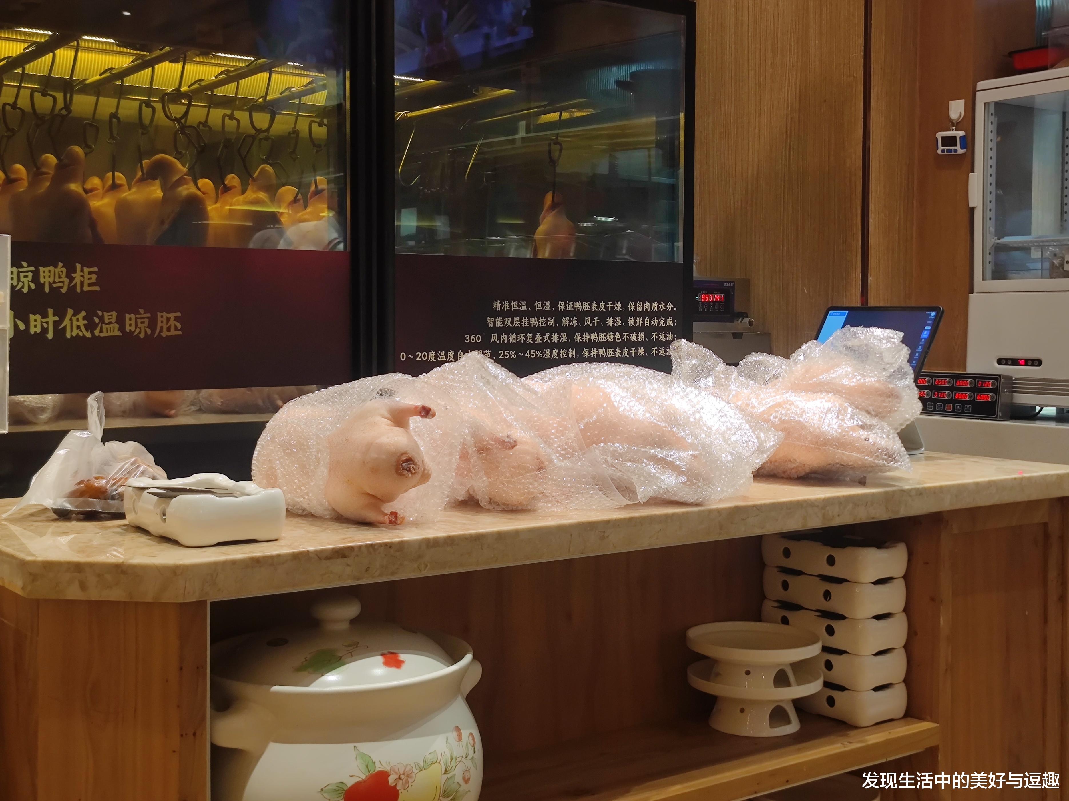 再看烤鸭师傅上货把鸭子往案板上一放,一个个鸭子硬邦邦的跟个塑料玩具似的。