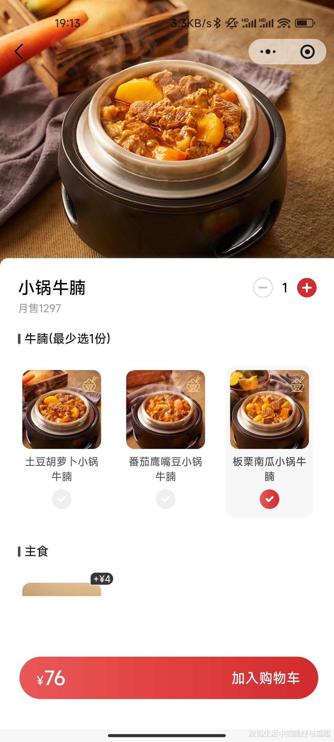 再看看板栗小锅牛腩,依旧是手里一握就能掌控的汤碗,售价76元