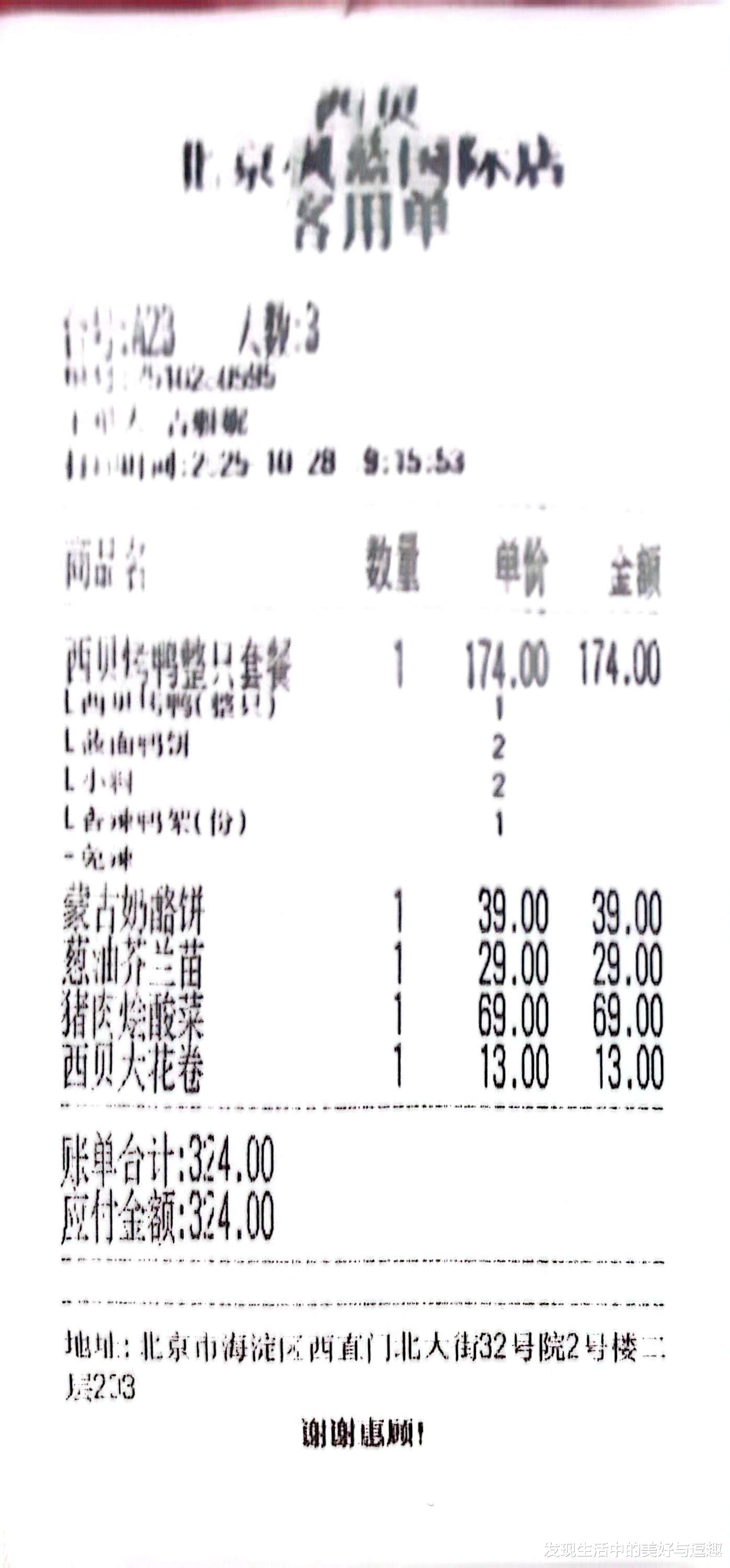 一早,孩儿妈说最后几天西贝返券,咱们带孩子吃一回去吧?我说返多少?她说吃150返150。我说,就是半价呗,问题是半价也不便宜,量小啊。孩儿妈说半价吃一回吧,她觉得味道还行,孩子也喜欢。