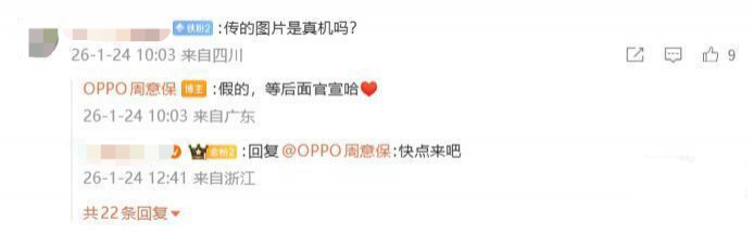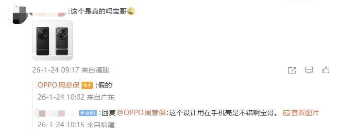 针对近日吸引网友热议的疑似OPPO Find X9 Ultra的渲染图,日前,在与网友互动时,面对网友提出的“传的图片是真机吗?”的提问, @OPPO周意保 明确回应称,“假的,等后面官宣”,随后又有网友带来上渲染图,再次提问“这个是真的吗”, @OPPO周意保 再次确认“假的”。