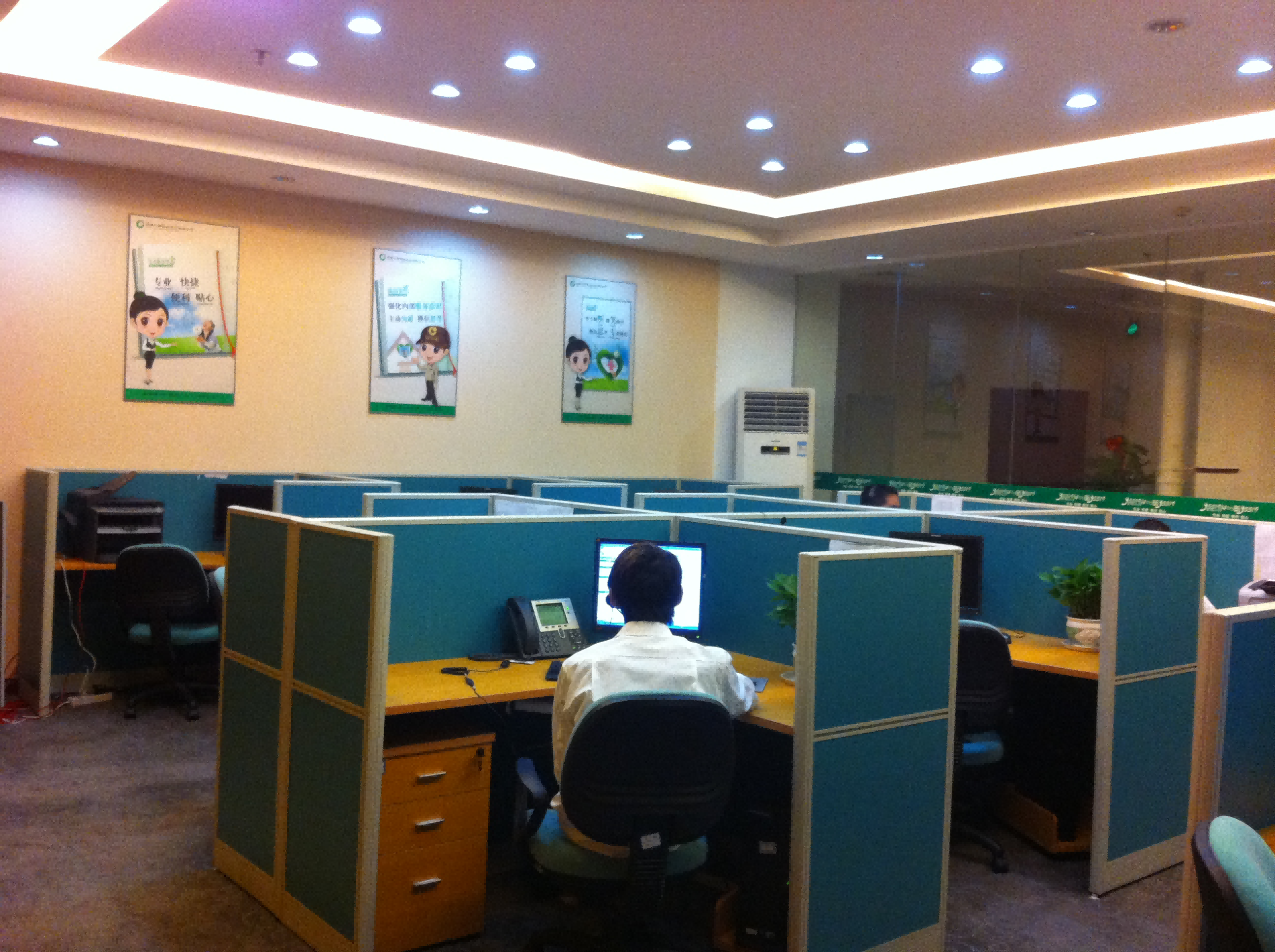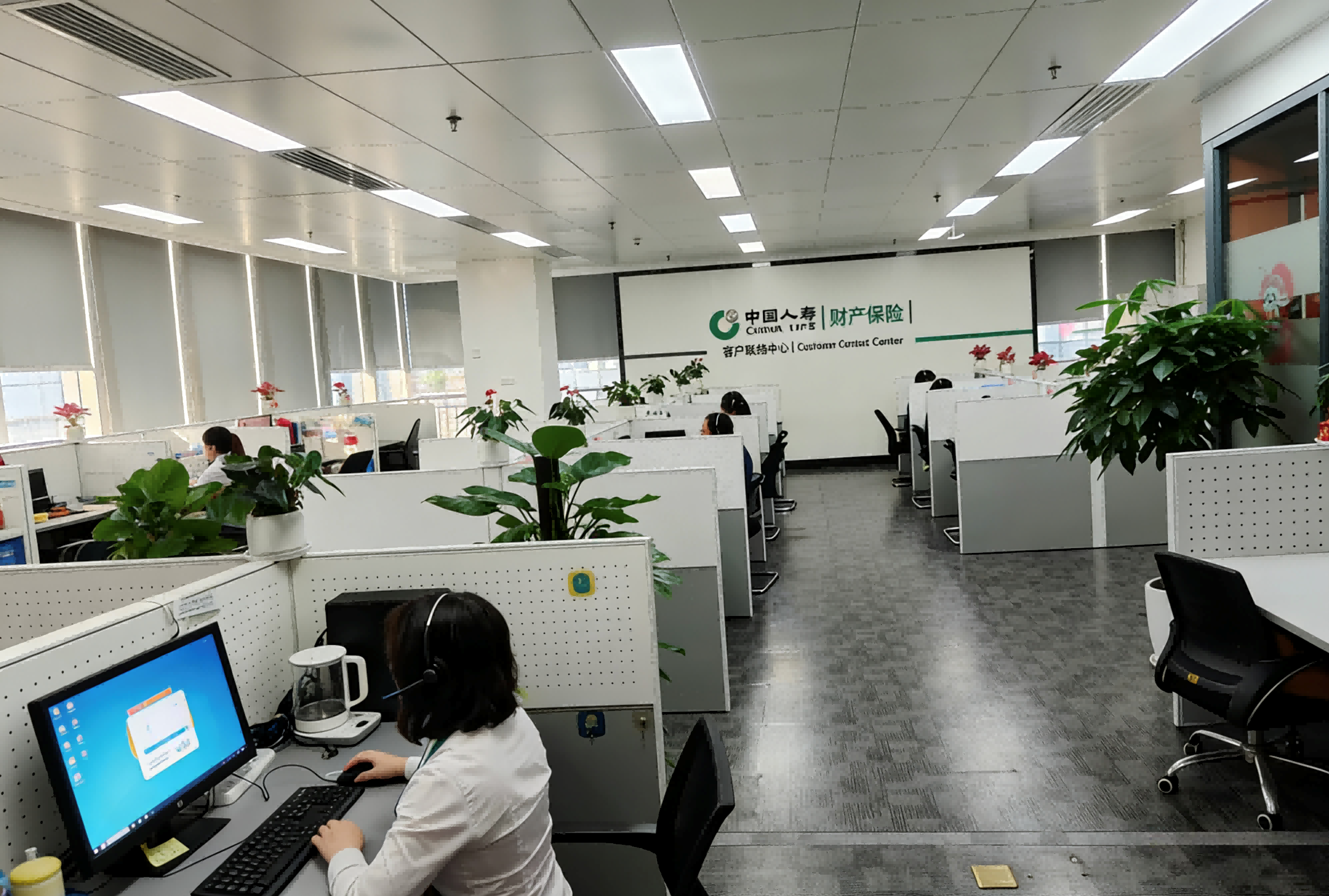 (中国人寿财险广西客户联络中心初代及当前职场照)