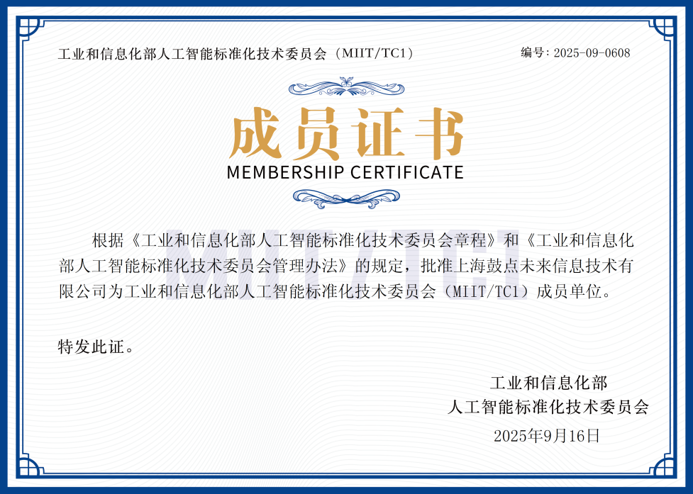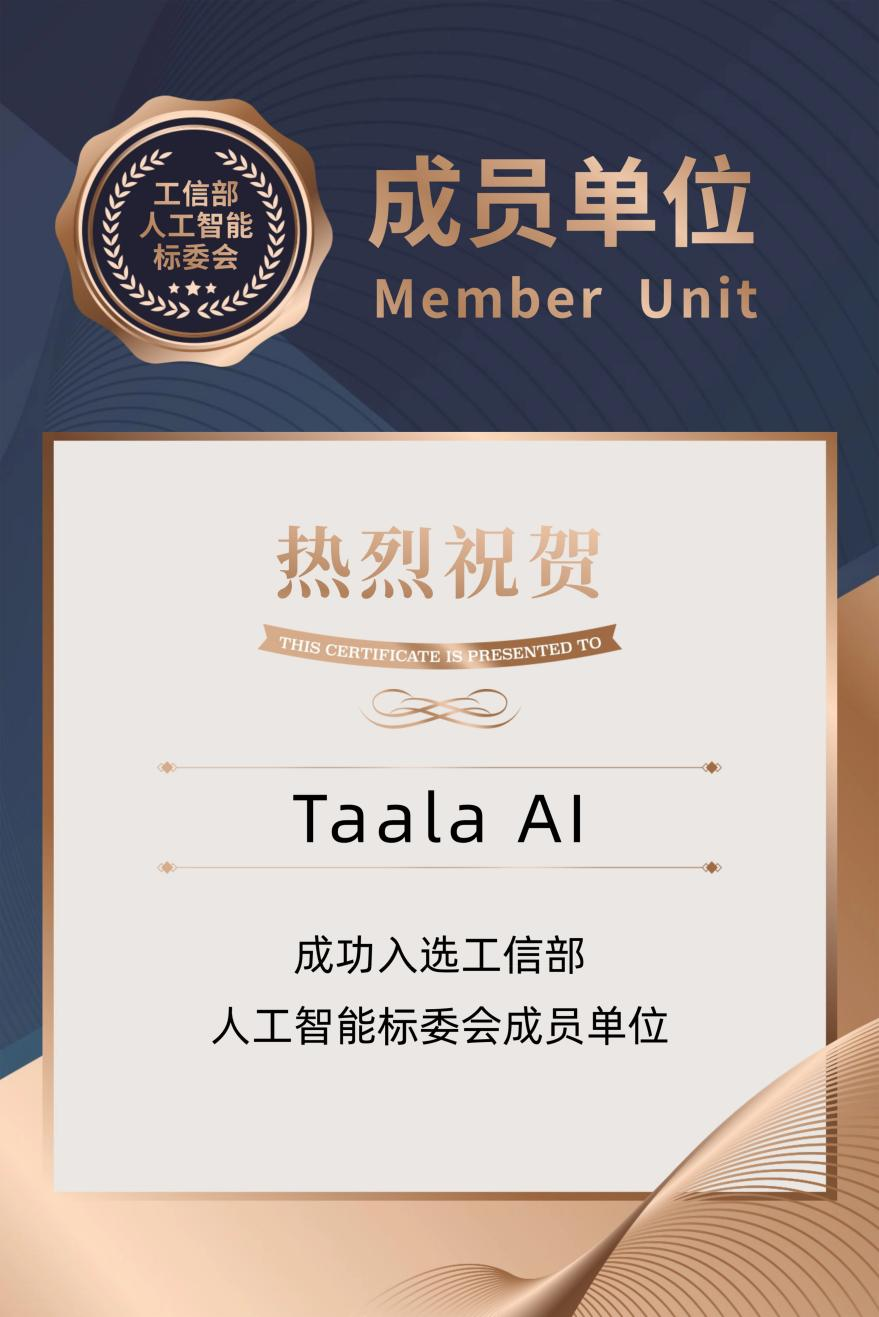 近日,「Taala AI」(上海鼓点未来信息技术有限公司)成功获批为工业和信息化部人工智能标准化技术委员会(MIIT/TC1)(以下简称“人工智能标委会”)成员单位。