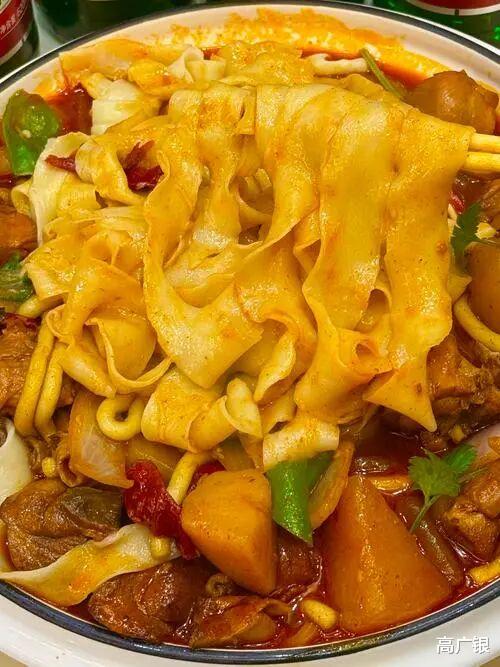 不光老板不乐意,旁边正在扒拉面条的大哥也会插一嘴:“就是,我娃三岁就知道,大盘鸡配烩面,比烩面配羊肉还香,这明明是咱河南的硬菜!” 你要是再较真,拿出手机搜给他们看,说大盘鸡发源于新疆沙湾,他们大概率会撇撇嘴,继续扒拉碗里的面:“管它哪儿来的,反正到了咱河南,就是咱河南的味,好吃就行!”这就是最真实的河南人,不纠结出身,只认味道。也正是这份实在,让大盘鸡从三千公里外的新疆戈壁,扎根到中原大地,成了河南人餐桌上离不开的烟火味——郑州的街头,大盘鸡店比胡辣汤店还密集,尤其是晚饭点,街头巷尾的小店飘出的酱香,能勾得人走不动道;外卖软件上,大盘鸡常年霸榜,不管是写字楼里的打工人,还是老小区里的大爷大妈,点一份大盘鸡,配一碗米饭或者一份烩面,就是最踏实的一顿饭。