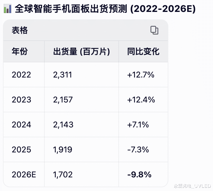 LTPS LCD 萎缩: LTPS LCD 面板的市场份额正受到严重挤压,出货量预计从 2025 年的 4.4% 下降至 2026 年的 2.5%。