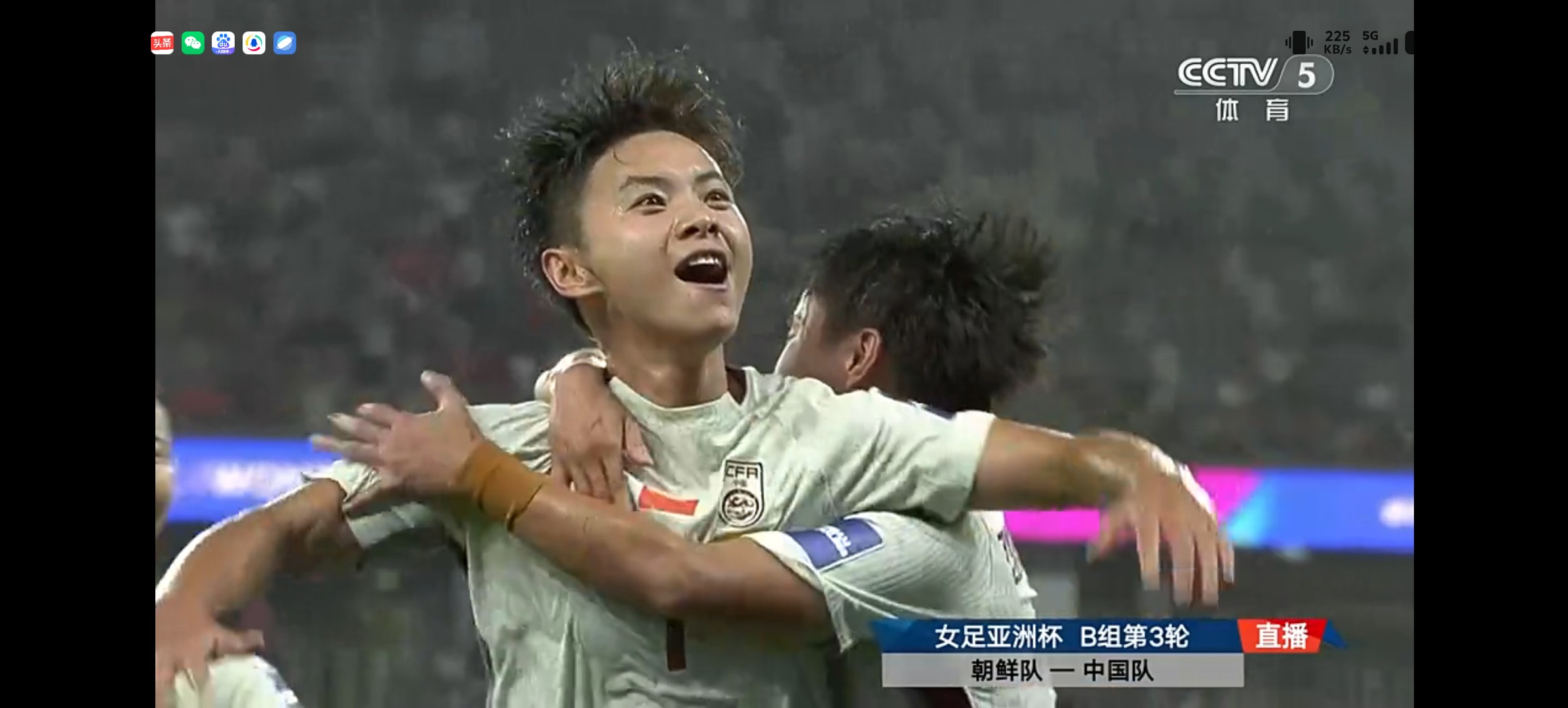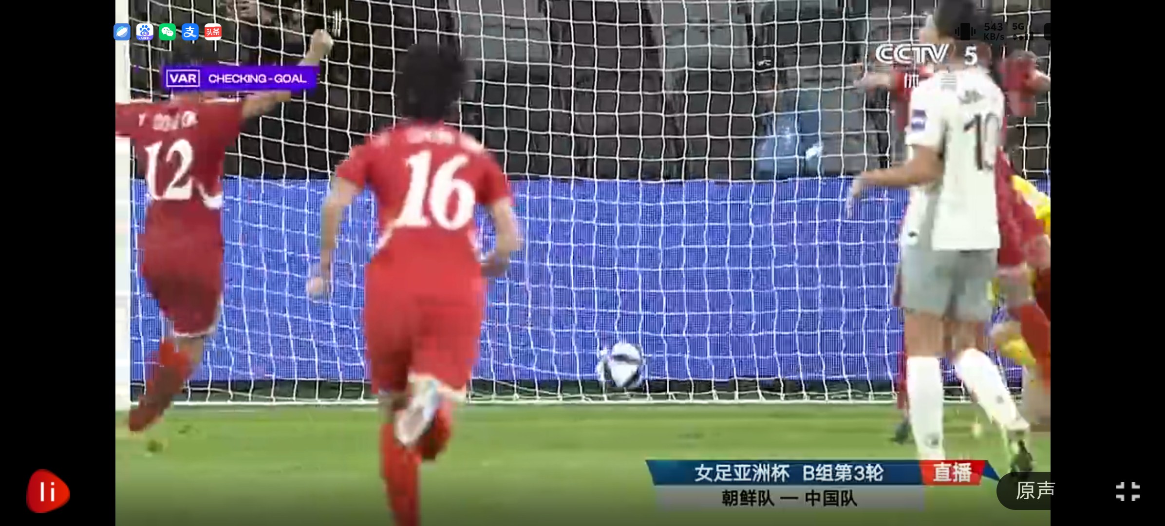 王霜的进球先是被认定越位在先,后经过VAR认定进球有效!上半场:中国女足2-1朝鲜女足。