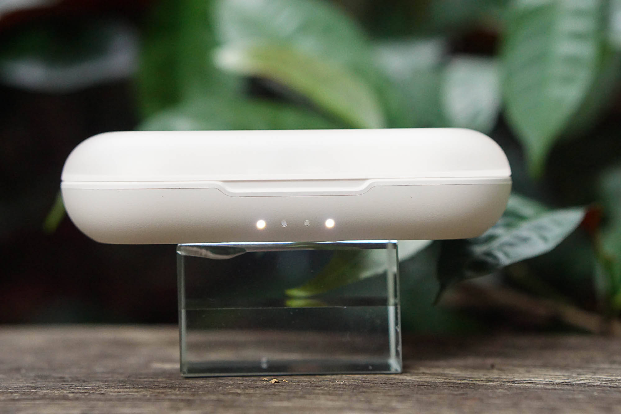 得胜LA380W耳机的收纳盒同时采用了手感上好的椭圆形设计,无论是握在手里还是放进口袋都非常舒适。收纳盒采用了特别的“开天窗”设计,半透明的上盖除了让收纳盒的外形显得更简约美学之外,还能让用户得以非常方便地查看耳机的充电情况。收纳盒自带600mAh的电量,加上耳机主机60mAh的锂电池容量,能支持用户不间断使用30小时左右,非常耐用。