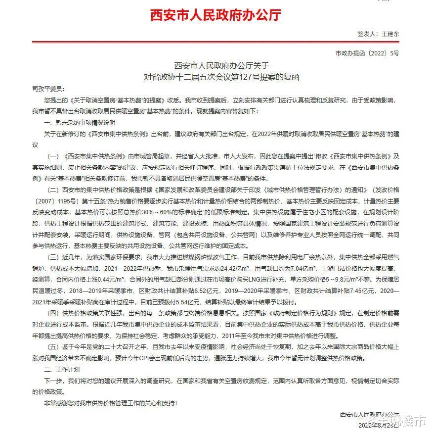 在2022年8月西安曾对一份“取消基本热费”的政协提案进行回复说明,理由集中于5个方面: