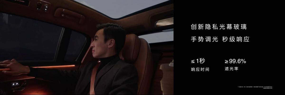 尊界S800座舱首发智能可变星空顶,呈现满天星光、北斗七星与流星雨特效。独创智能追光系统,追光灯分区布局点亮仪式感。全域环绕氛围灯隐藏式光源与内饰主题光色同韵,细腻光效如流动星空。前风挡采用三层纳米镀银技术,紫外线阻隔率大于99%。为用户带来前所未有的惬意体验。