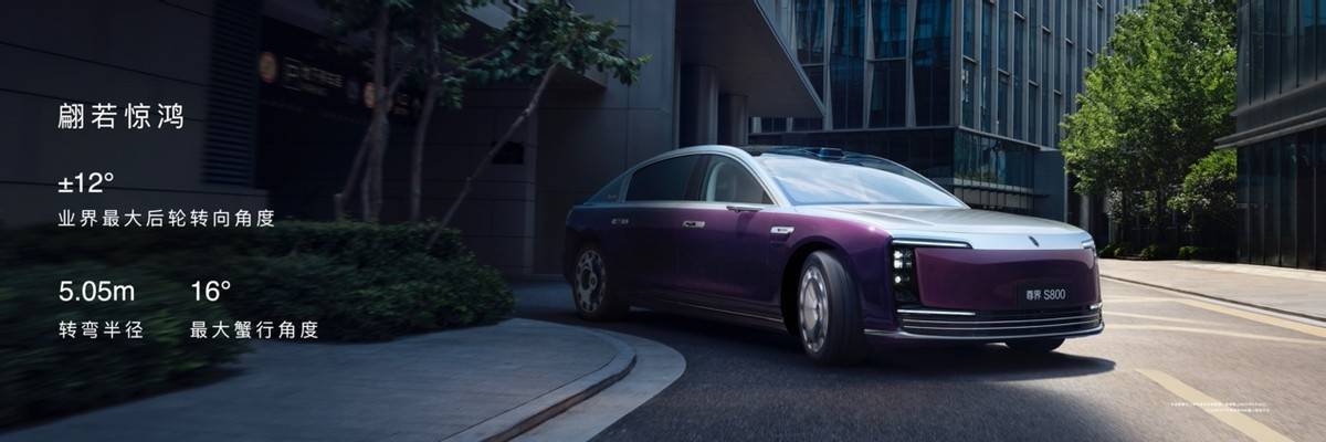 尊界S800纯电双电机零百加速4.3s,增程三电机零百加速4.7s,增程双电机零百加速4.9s。四活塞卡钳配合电液协同制动,百零制动距离34.5m。配备双制动控制器与双芯片轮速传感器,自适应扭矩调节与动力分配,实现全维舒适协同控制。路况附着力感知,实现自适应滑移率控制。涉水深度500mm。±12°后轮转向技术,最大蟹行角度16°,转弯半径仅5.05m,实现灵活如燕、稳如磐石的操控体验。