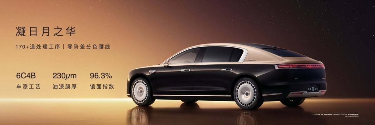 车身方面,尊界S800自然流线车身设计搭配大视野纯平侧窗,风阻系数最低0.206cd。双色车身采用6C4B车漆工艺,历经170+道工序精雕细琢,实现零阶差分色腰线效果。车身漆膜厚度达到230μm,镜面指数96.3%。提供21英寸25孔日耀、20英寸12孔晖月、20英寸30辐星辉与20英寸低风阻轮毂四款轮毂,将科技与艺术凝练于每一处细节。
