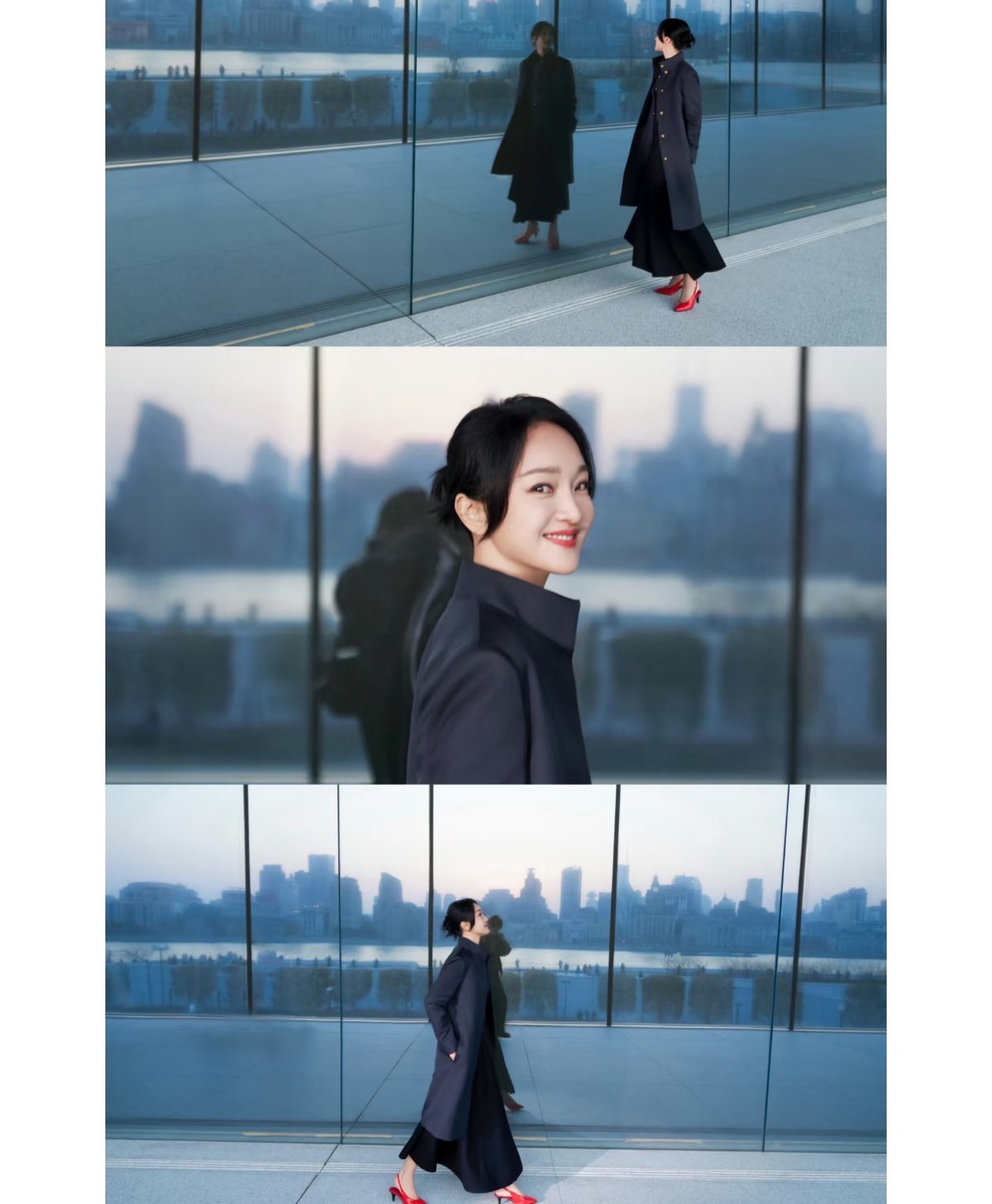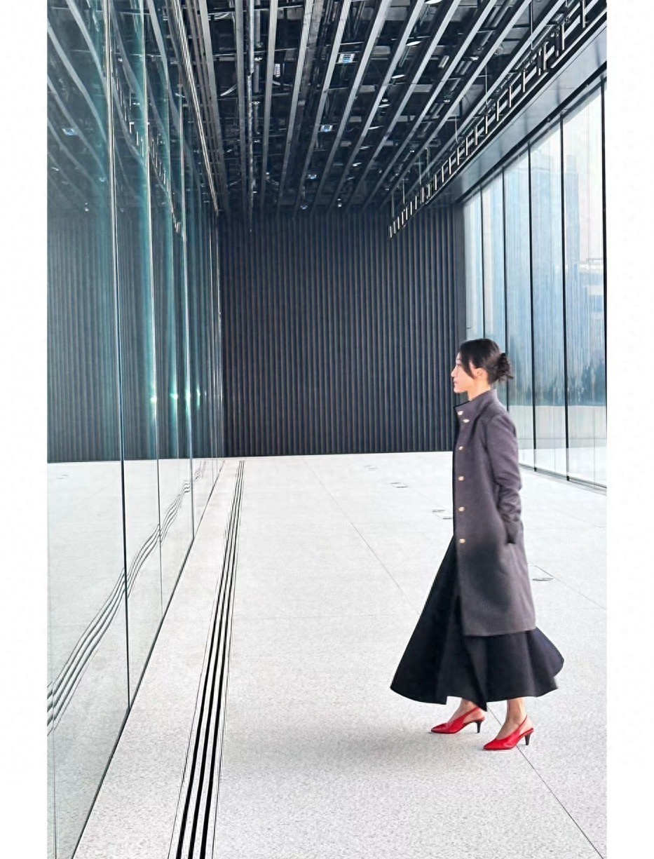 而且周迅作为小个子身材,在尝试这样层次感明显的穿搭时,其实很容易穿出压个子的感觉,但是看看她最后呈现的效果,视觉上可是很显高啊。