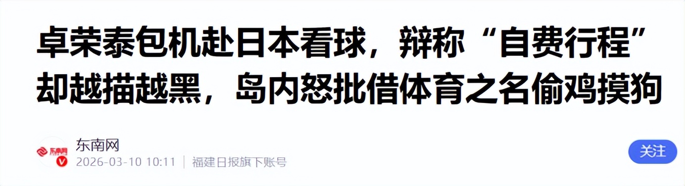 卓荣泰包机赴日本看球,辩称“自费行程”却越描越黑,岛内怒批借体育之名偷鸡摸狗——东南网