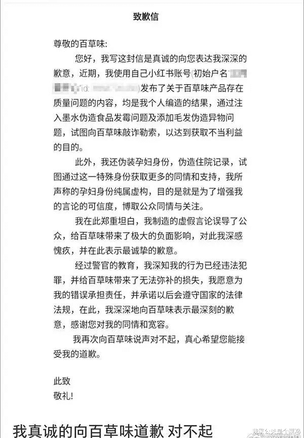 从菜鸡公关的角度来看,在前期事件尚处于调查过程中的时候,百草味也应该发份声明,把针对媒体的回应直接复制粘贴都行;在后期事件水落石出之后,应该将那份致歉信发布在自家各大官方渠道上。