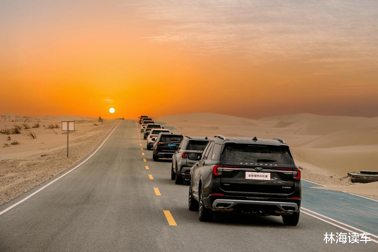 作为豪华性能旗舰SUV,探险者以86年技术底蕴驯服桀骜沙海。“全美十佳”2.3T+10AT动力总成,在高温缺氧环境下持续爆发289Ps马力,实现“沙浪路段”无断层动力输出;百万级豪车CD6纵置后驱赋予50:50黄金配重与5.9m同级最小转弯半径,让每一次过弯和加速都游刃有余;当车外黄沙漫天,车内却是另一番天地——B&O品牌音响的纯净声场覆盖风噪,ANC主动降噪系统过滤残余杂音,12向电动调节座椅搭配按摩功能,将“死亡之海”变成移动的“舒适长廊”,让长途穿越成为一种享受。