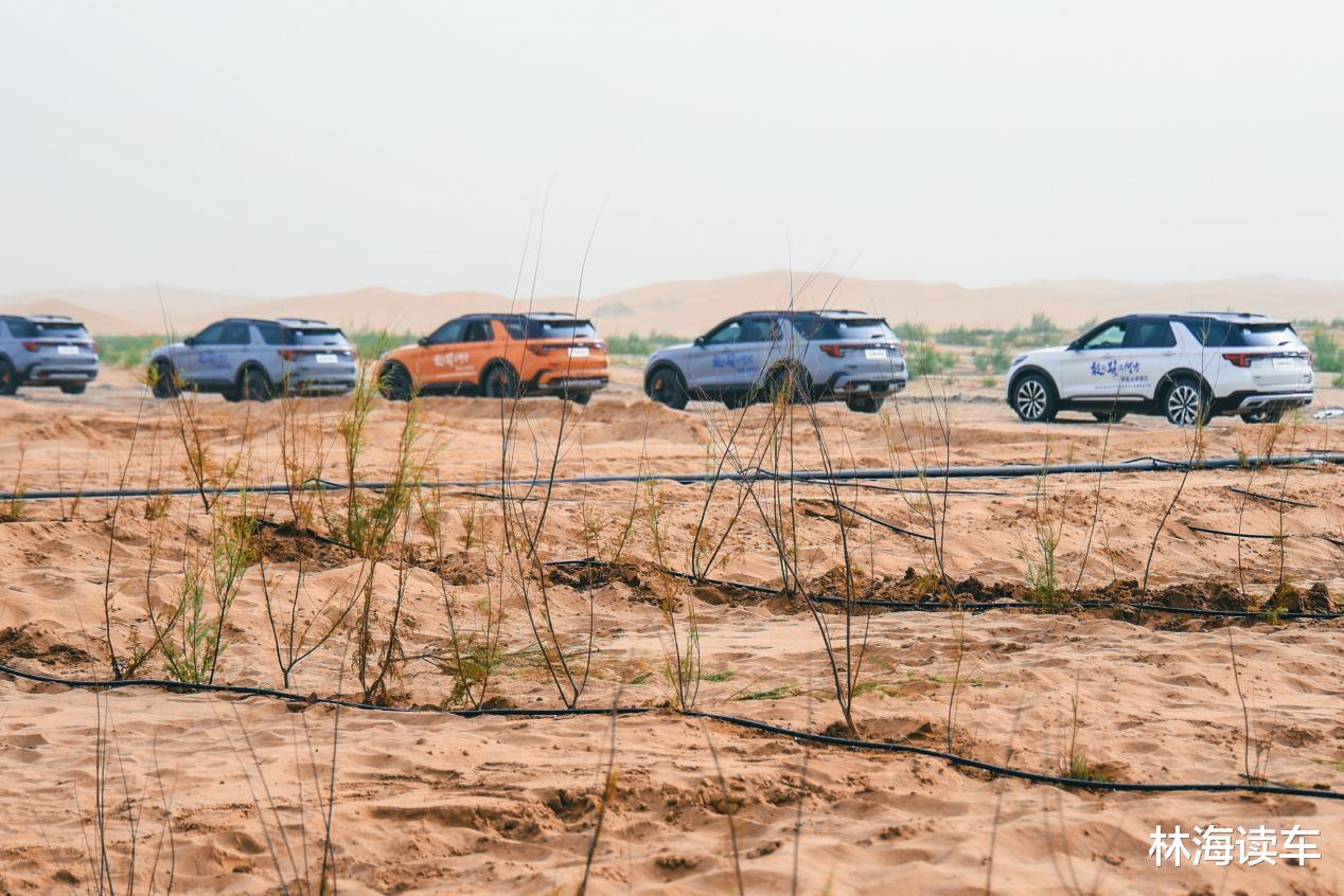 一路向前,福特探险者不仅以实力穿越“死亡之海”,更将探索的热情转化为守护的责任。为助力锁边巩固与生态修复,长安福特捐赠10000余棵幼苗,带领车主用户深入塔克拉玛干腹地锁边扩绿。在治沙专家的指导下,福探长们系统学习科学治沙技术,并亲手栽种红柳,以实际行动为构筑“绿色长城”贡献力量。