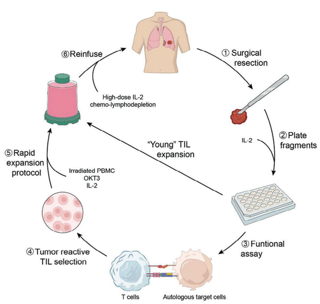 5.随后通过静脉输注将TIL细胞回输给患者;