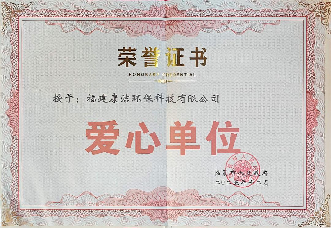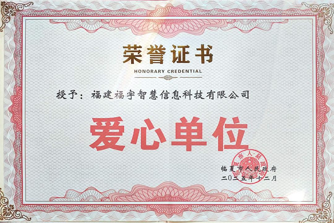 临夏市政府颁发给福延公益和爱心人士的“爱心单位”荣誉证书。