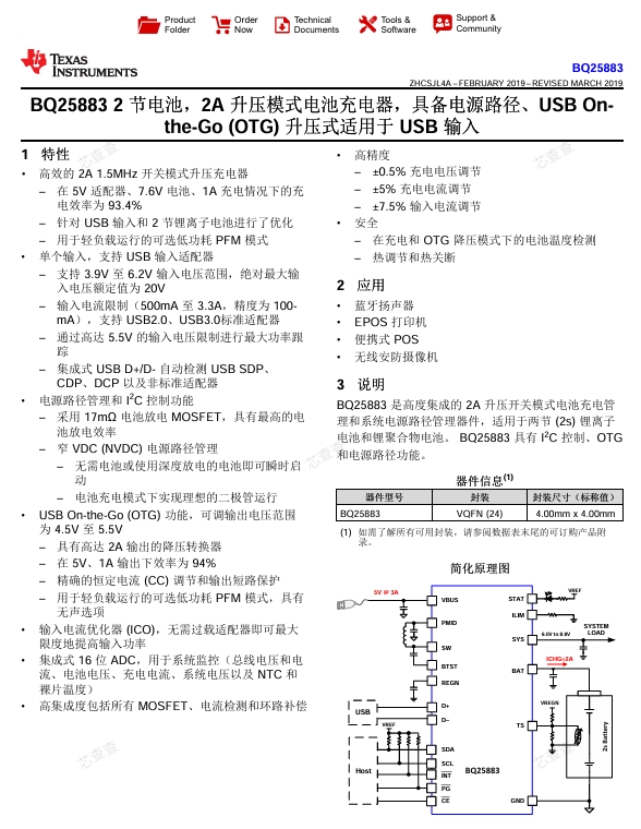 查询丝印得知,这颗电源管理芯片来自德州仪器,产品型号为BQ25883,封装方式为VQFN-24。