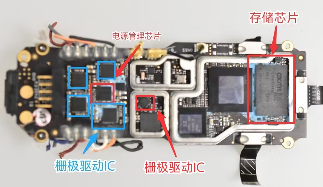 国产化与自研芯片应用:无线通信采用康希通信射频前端,存储选用长鑫LPDDR4内存,图传与核心逻辑可能搭载大疆自研芯片,体现供应链自主与技术护城河。