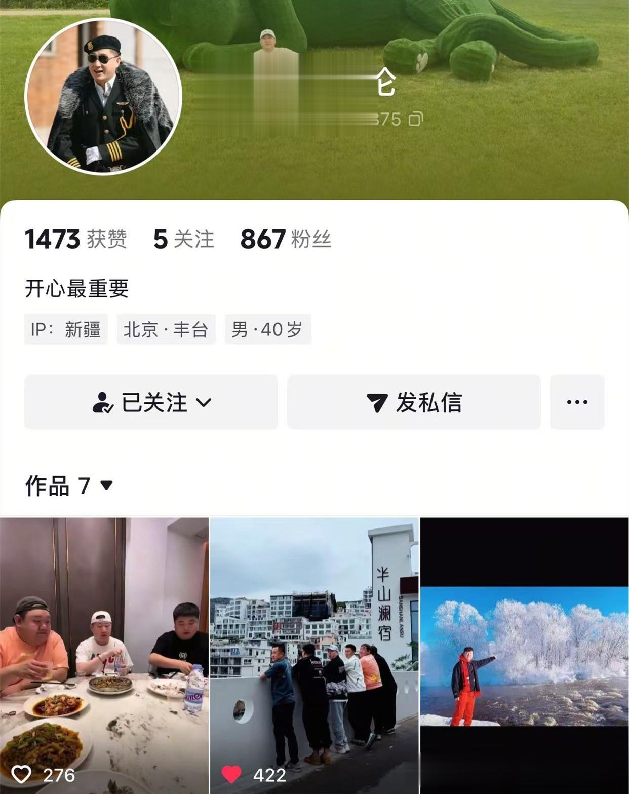 张鹤伦的小号名叫“我不是张鹤伦”,第一条视频是9月27日发布的铜锅涮羊肉。之后又发布了六个视频,有生活日常,有出国演出游玩照,有与好友聚会照。一个月过去,张鹤伦小号积累了八百多粉丝。从吸粉能力来看,与张鹤伦本人相差太远。当然,这也是正常的。估计多数粉丝、网友刷到这个账号直接忽略,如此一眼假,任谁也想不到这是张鹤伦的小号。