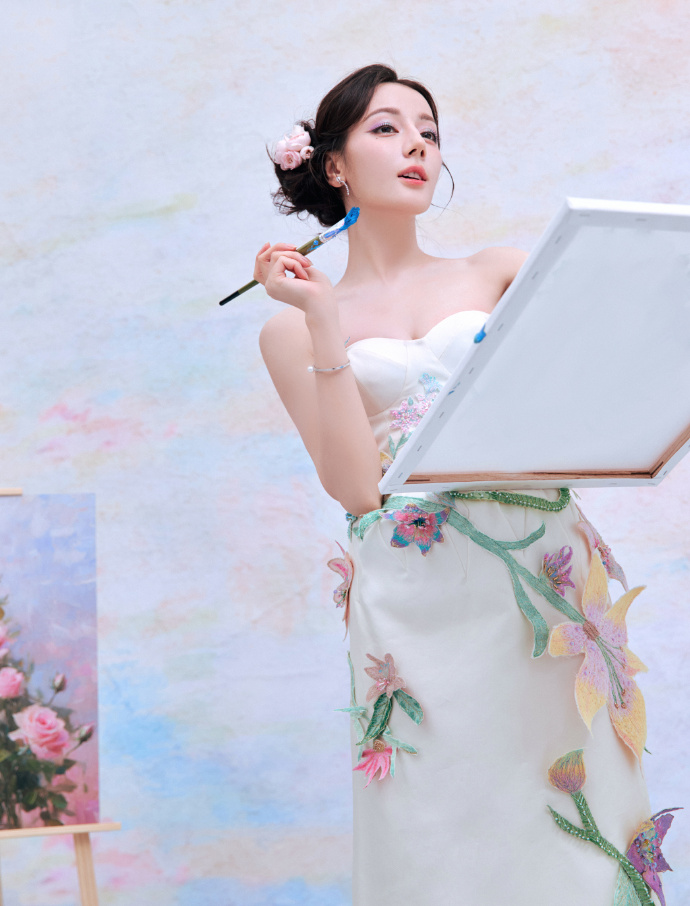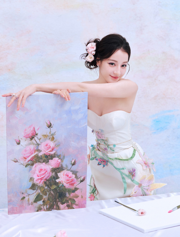 他结合了迪丽热巴的异域长相,手持油画,就像是古堡少女从画中走到了我们显示生活当中,一颦一笑,都是那么灵气。