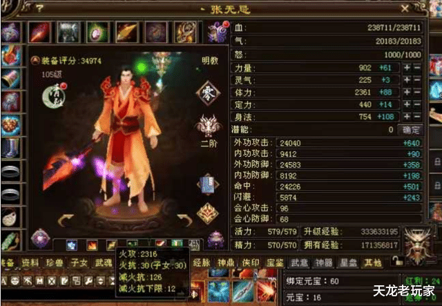 时光将这个号停留在3.4万评分,血量23万,蓝量2万,命中2.4万,闪避5874,会心攻击96,会心防御68,主火攻击2316。