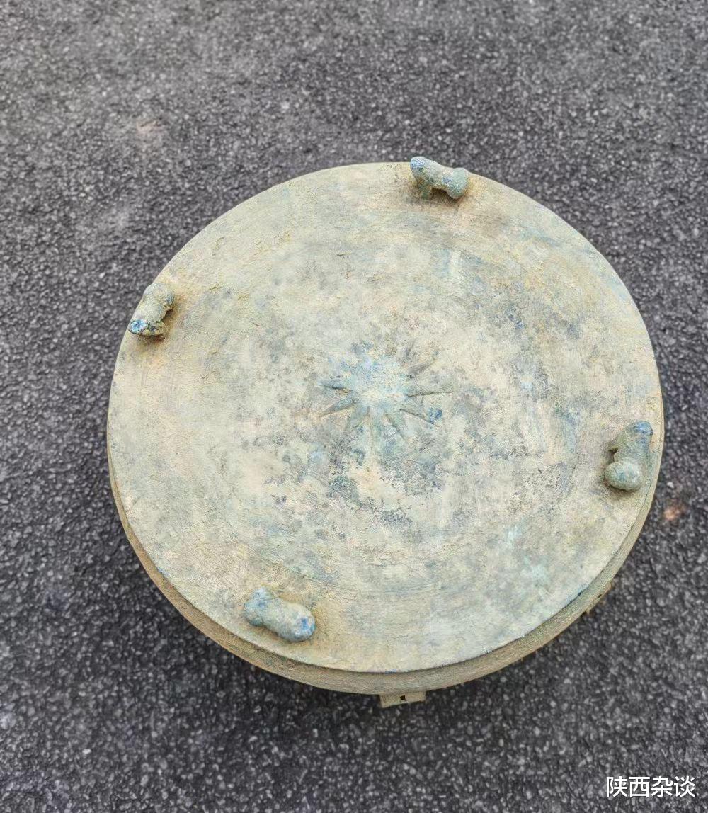 据介绍,1月12日,村民王德强在生产作业中发现了铜鼓,随即主动上交至旧城派出所,并于1月15日正式捐赠给威信县文物管理所。经初步鉴定,铜鼓通体青铜铸造,保存较为完整,形制特征鲜明:胴、腰结构分明,鼓面直径58.5厘米、胴径65厘米、通高29厘米,重约15千克。鼓面中心饰有12芒太阳纹,边缘刻有短线带状花纹,均匀铸有四只蹲踞蟾蜍,每只长约7厘米、宽3厘米、高3厘米,造型生动。胴腰间对称分布两对带状扁耳,耳长17厘米、宽5厘米,饰绳纹并设有方形小穿孔。