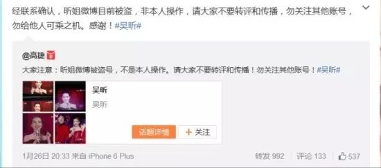 事情发生得很突然,吴昕得知之后也吃了一惊,赶紧找来工作室辟谣,并且找回了账号删了帖子,这才没能酿成更坏的结果。