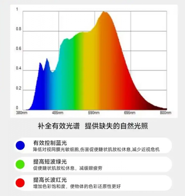 一句话总结:全光谱的优势在于提供更丰富、更均衡的光谱信息,让眼睛在识别色彩、分辨细节时更轻松自然,从而从根源上营造一个更舒适的视觉环境,而不仅仅是不刺眼。