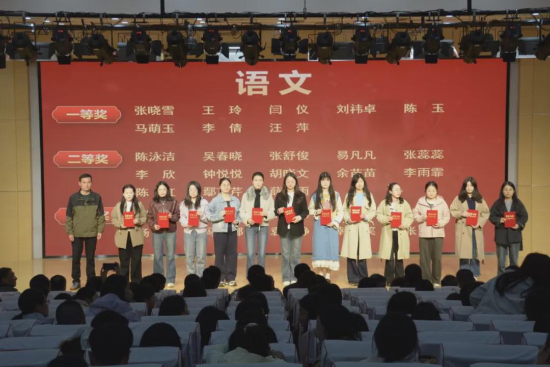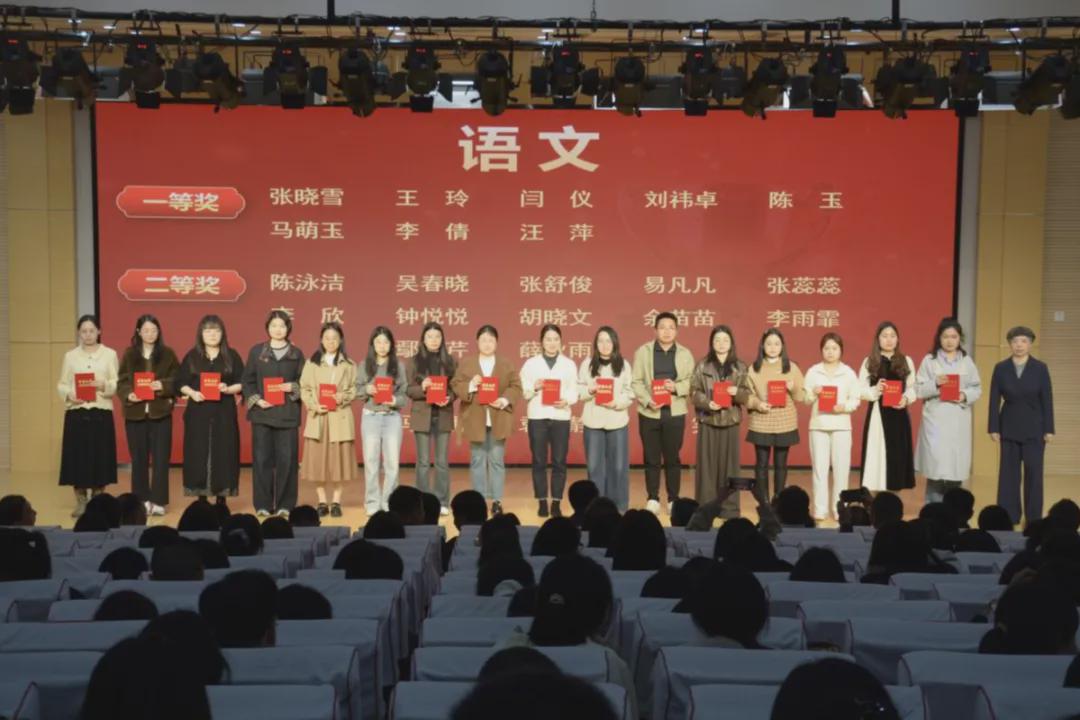 党委委员、副校长向满宣读总结文件,正式开启颁奖典礼。颁奖仪式按学科有序进行,各学科获奖教师依次登台,学科名师与学校领导为获奖教师颁发证书。全场掌声雷动,致敬每一位深耕讲台、不懈拼搏的青年教育者。