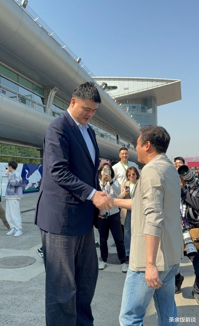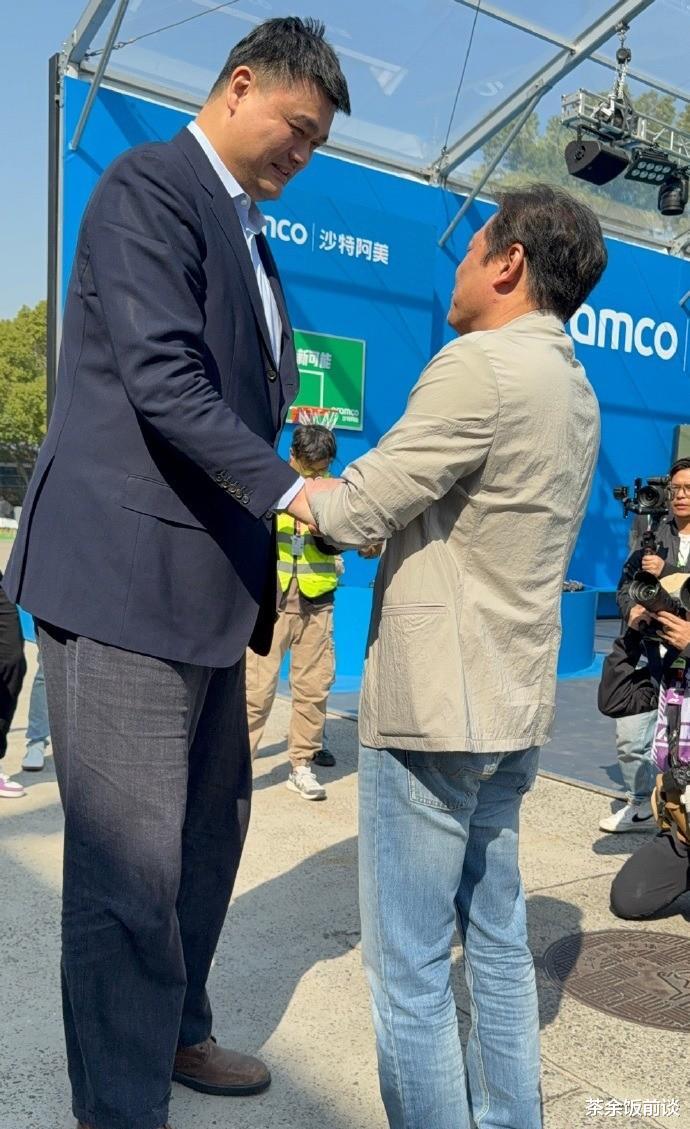 中国篮球名宿姚明和中国足球名宿范志毅的同框,不仅是体育界的梦幻联动,更是视觉上的巨大冲击。