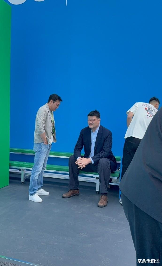 或许是因为姚明曾经担任中国篮协主席的缘故,他习惯性地坐着聆听范志毅和王猛的谈话,而翟晓川则拿着墨镜,静静地站在一旁。