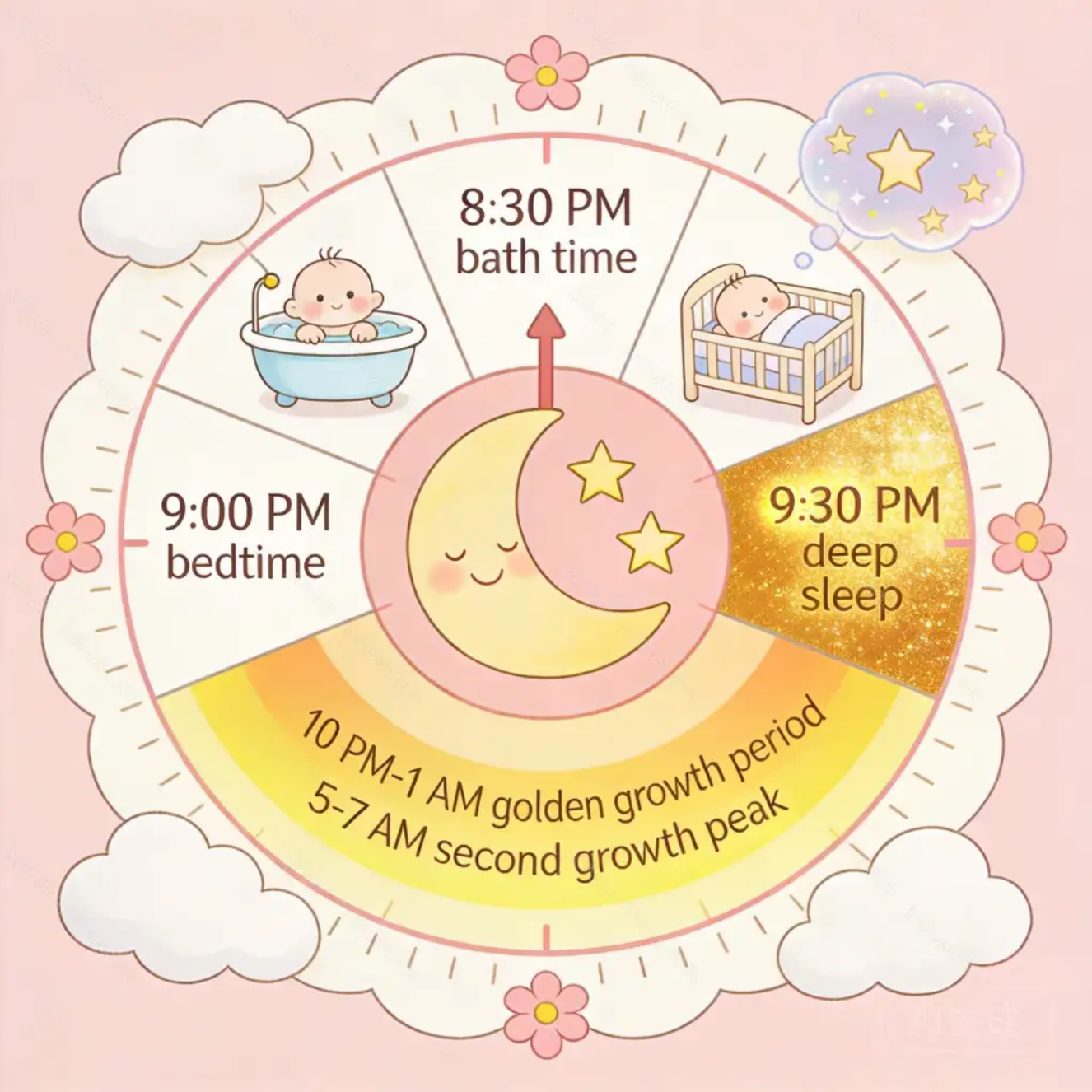 ⚠️ 划重点:生长激素分泌的前提是进入深睡眠,不是睡着就行。娃如果晚上11点才睡,就错过了第一个分泌高峰!