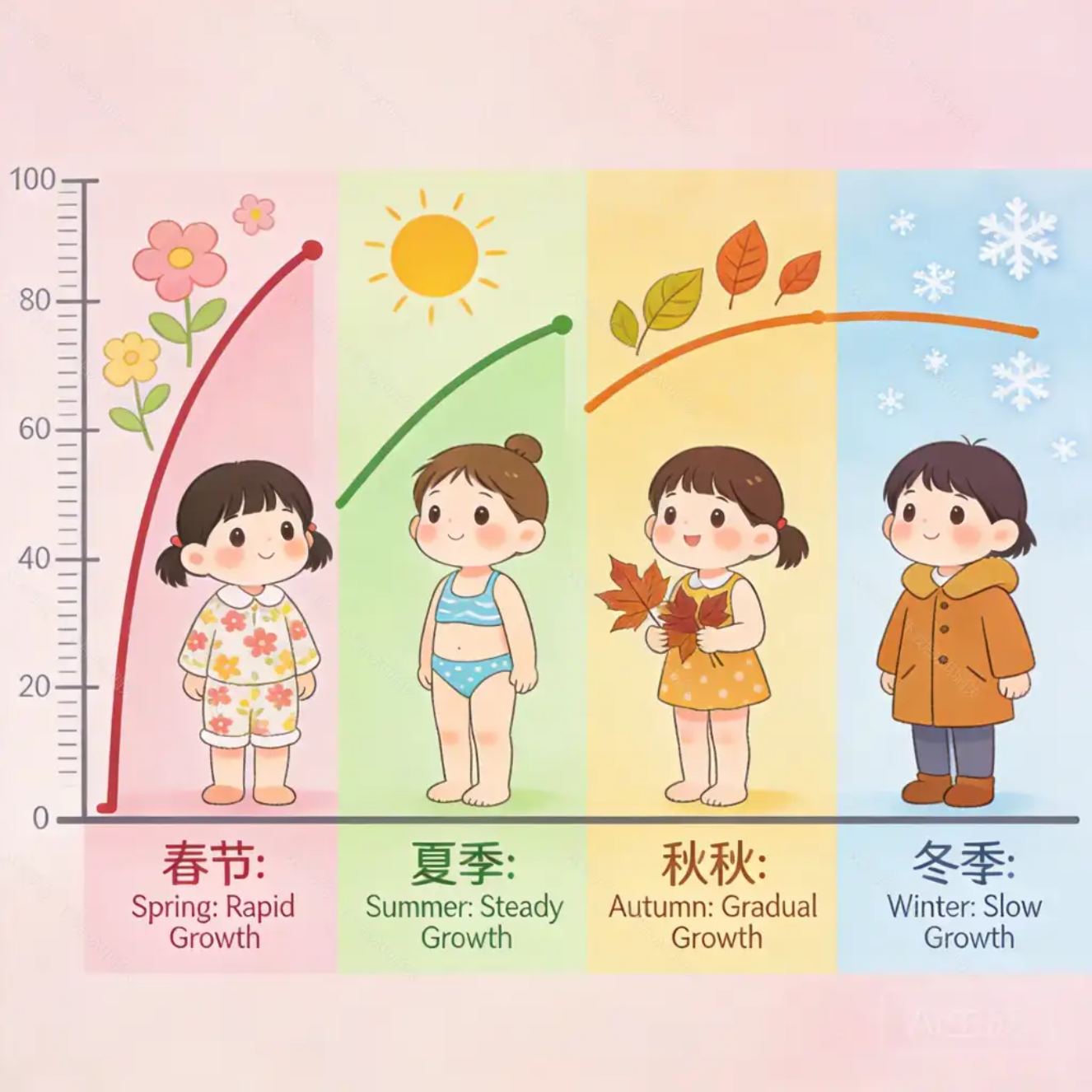 春季身高增长速度是秋冬季的 2-2.5倍