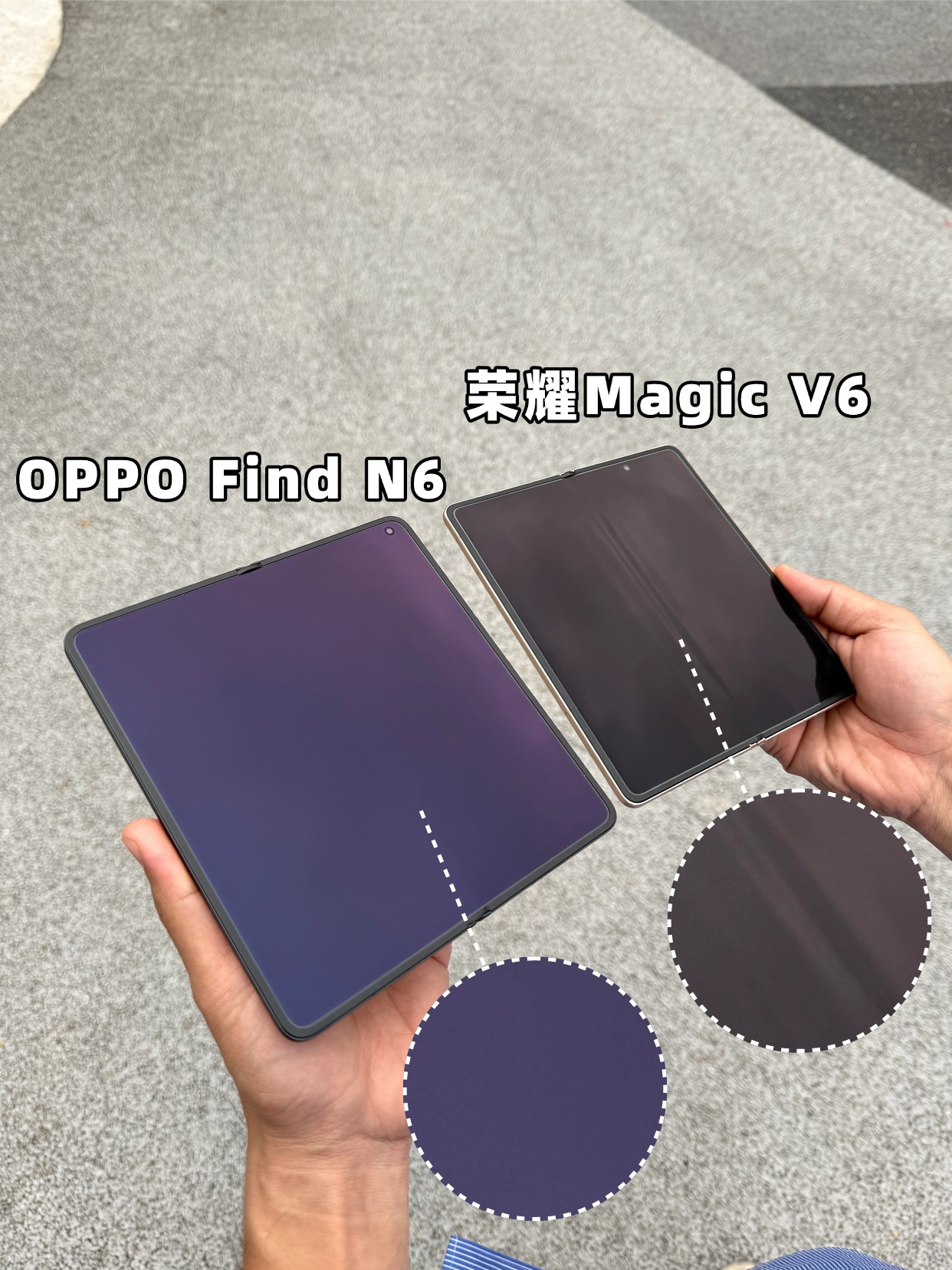 当然了,折叠屏手机最关键的还是折痕把控,这当中OPPO Find N6主打“无感折痕”——展开后屏幕几乎纯平,视觉上看不到痕迹;荣耀Magic V6也控制得相当也不错,但某些角度下细看会有一道浅浅的印子,哪款更适合你,取决于你对于折痕的在意程度,不过任谁都知道,平整度和使用愉悦度是成正比的。