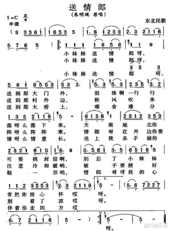 歌词方面,《小妹妹送情郎》更是堪称一绝。歌词简洁明了,却又不失深意。它以小妹妹送别情郎为背景,通过描绘送别时的场景和心情,展现了女子对男子的深情厚意和依依不舍。歌词中的每一句都充满了真挚的情感,让人感受到爱情的美好和伟大。尤其是那句“送情郎送到大门东,正赶上老天爷刮起了西北风”,既描绘了送别时的自然环境,又通过“西北风”这一意象,暗示了离别的不舍和无奈,让人在感动中体会到了歌词的深意。