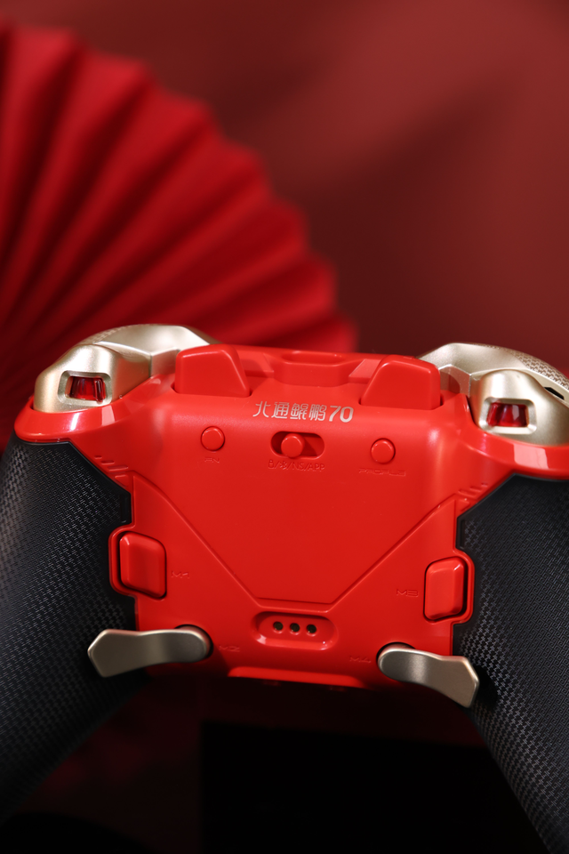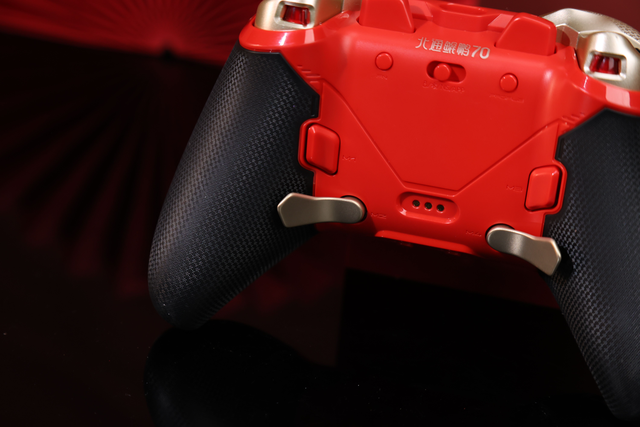 在保证美观度的同时,北通鲲鹏70马年新春限定款外形设计也兼顾了实用,玩家长按的摇杆、十字键和握把包胶用的是深邃黑配色,就算容易出手汗也不用担心手柄清理的问题。而顶部的扳机键、背键、技能键和ABXY按键都是鎏金色,整个搭配年味满满有诚意。